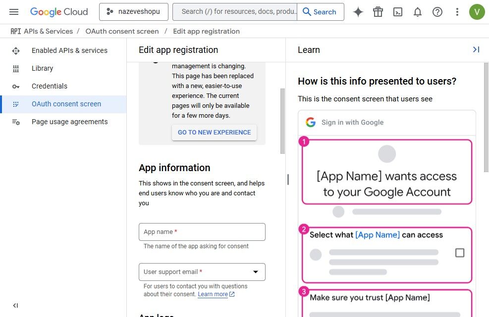 10. Přejděte na „Go to new experience“