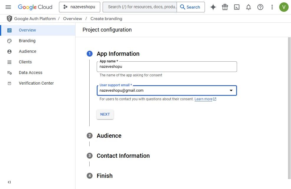 9. Prvně vytvoříme OAuth consent screen
