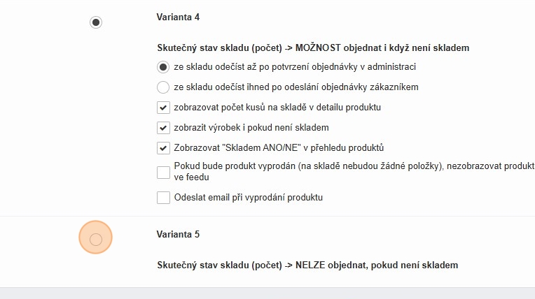 2. Aktivujte si variantu skladu číslo 5 a nezapomeňte změny uložit.