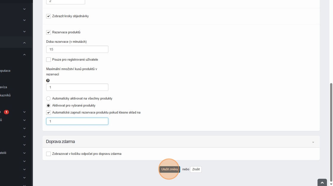 9. Pokud nastavíte „Aktivovat pro vybrané produkty“ můžete také aktivovat „Automatické zapnutí rezervace produktu pokud klesne sklad na„.