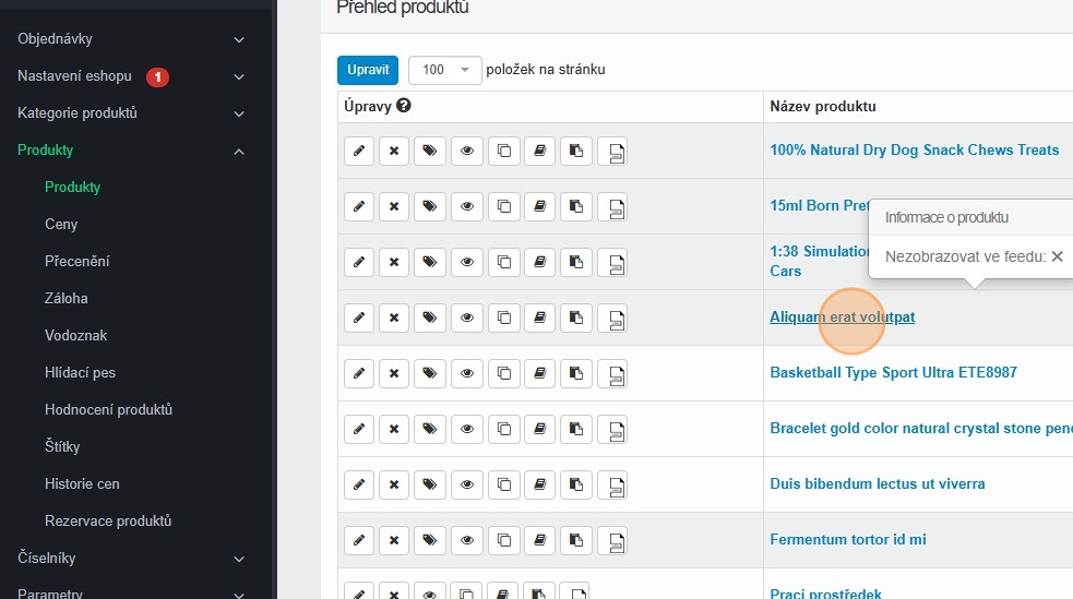 11. Přejděte do sekce E-shop – Produkty – Produkty a otevřete si produkt, u kterého chcete rezervaci aktivovat.