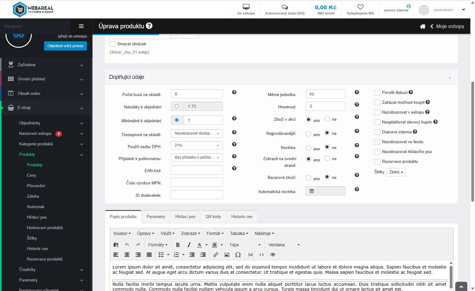 11. Přejděte do sekce E-shop – Produkty – Produkty a otevřete si produkt, u kterého chcete rezervaci aktivovat.