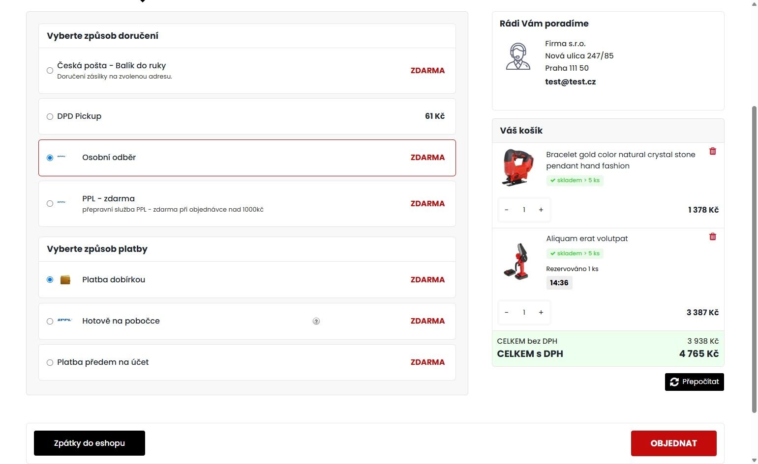 13. Zde vidíte zobrazení produktů v košíku s i bez rezervace. U rezervovaného produktu si můžete všimnout odpočtu a počtu rezervovaných kusů.