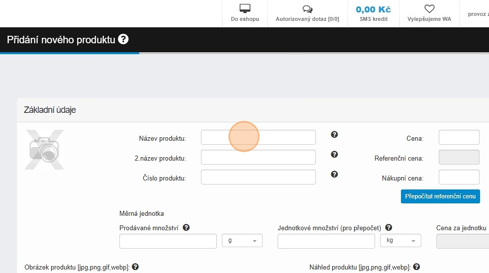 3. Vyplníme název dárku do kolonky „Název produktu“.