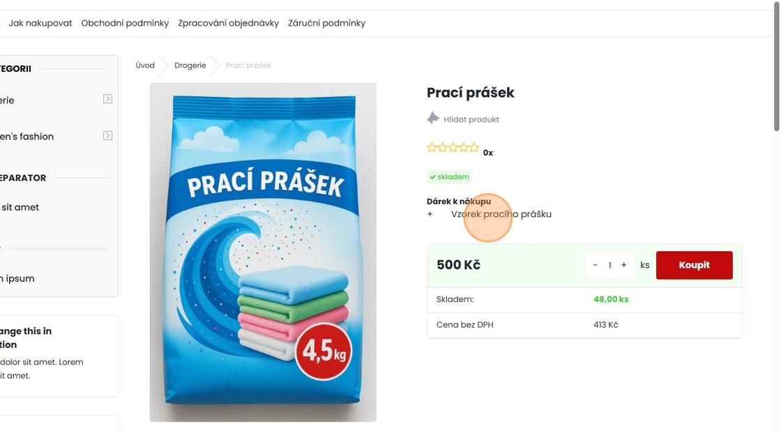 29. V detailu produktu zákazník uvidí jaký dárek nákupem získá. Kliknutím na název dárku, se dostane do informací o dárku, které jsme vyplňovali viz kroky výše.