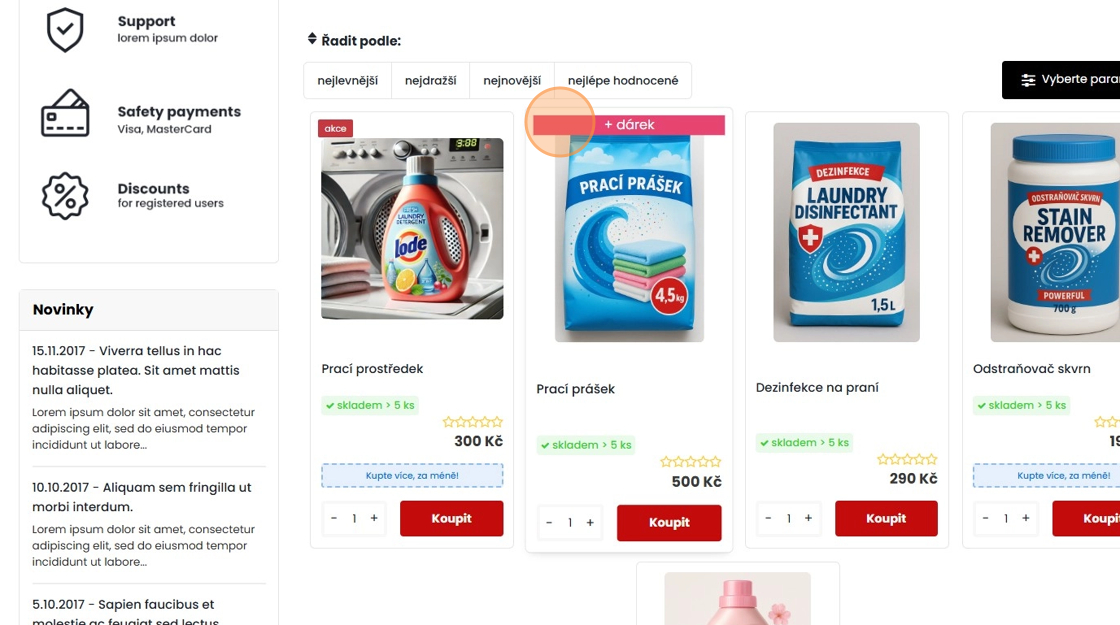 28. Na e-shopu zákazník uvidí informaci „+ dárek“, která označuje produkty, u kterých lze jejich nákupem získat dárek.