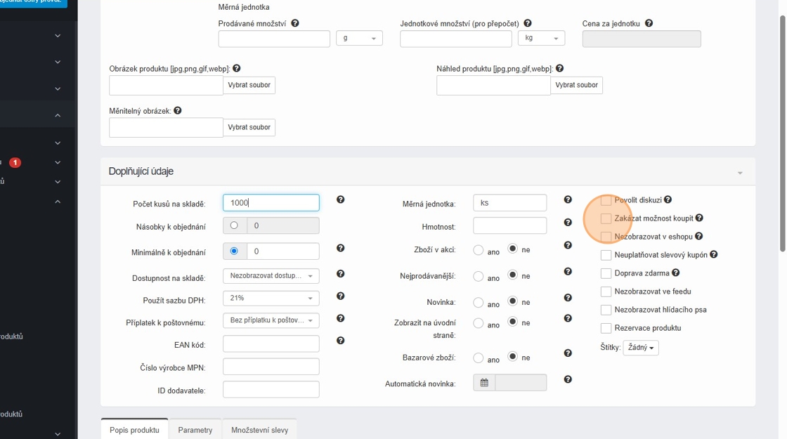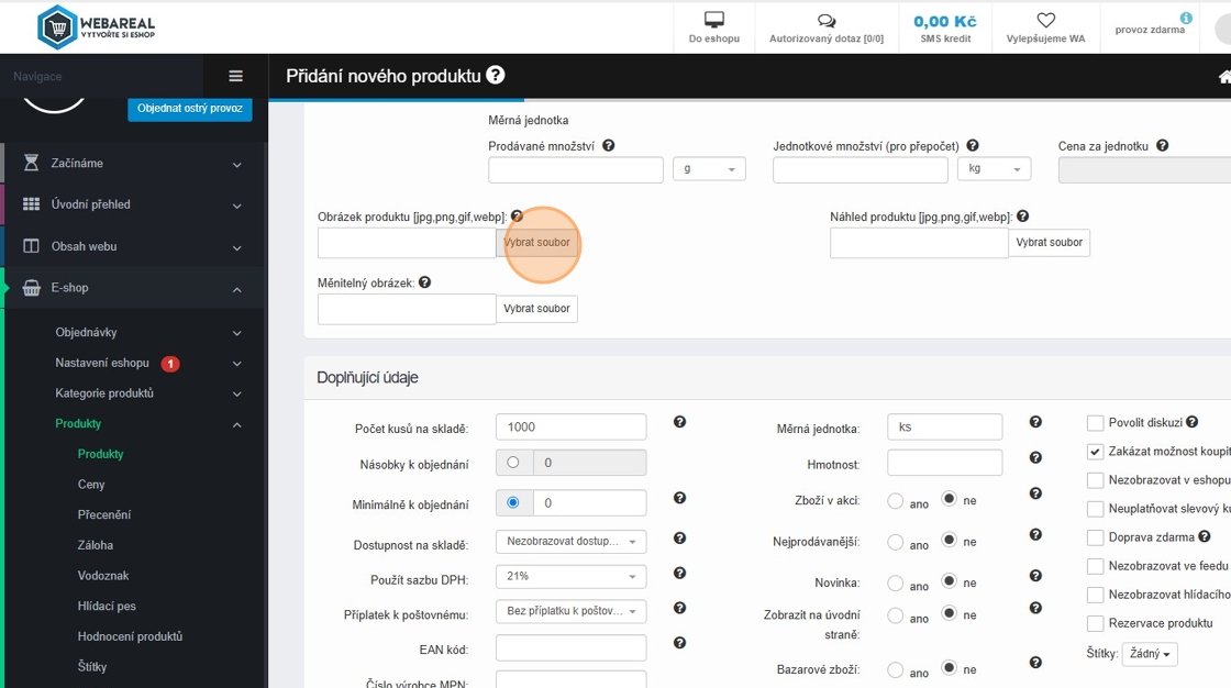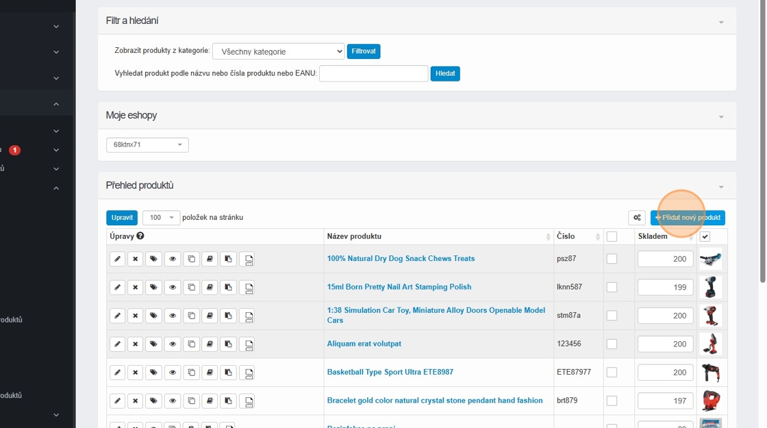 2. Pokud chceme vytvořit produkt, který bude sloužit pouze jako dárek, ale nebude prodejný, klikneme na „Přidat nový produkt“.