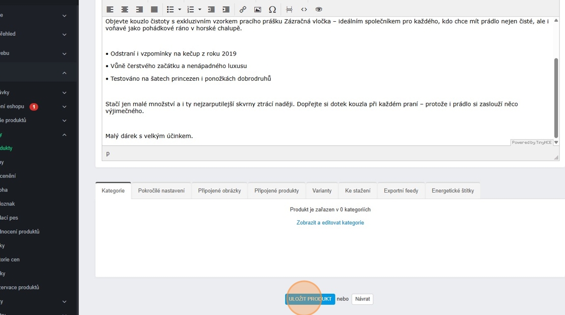 7. Můžete vyplnit i popis dárku, který se na e-shopu zobrazí po rozkliknutí dárku a následně vše uložte.