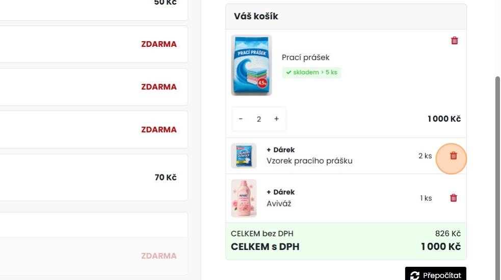 31. Pokud zákazník dárek nechce využít, může jej jednoduše z košíku odstranit.