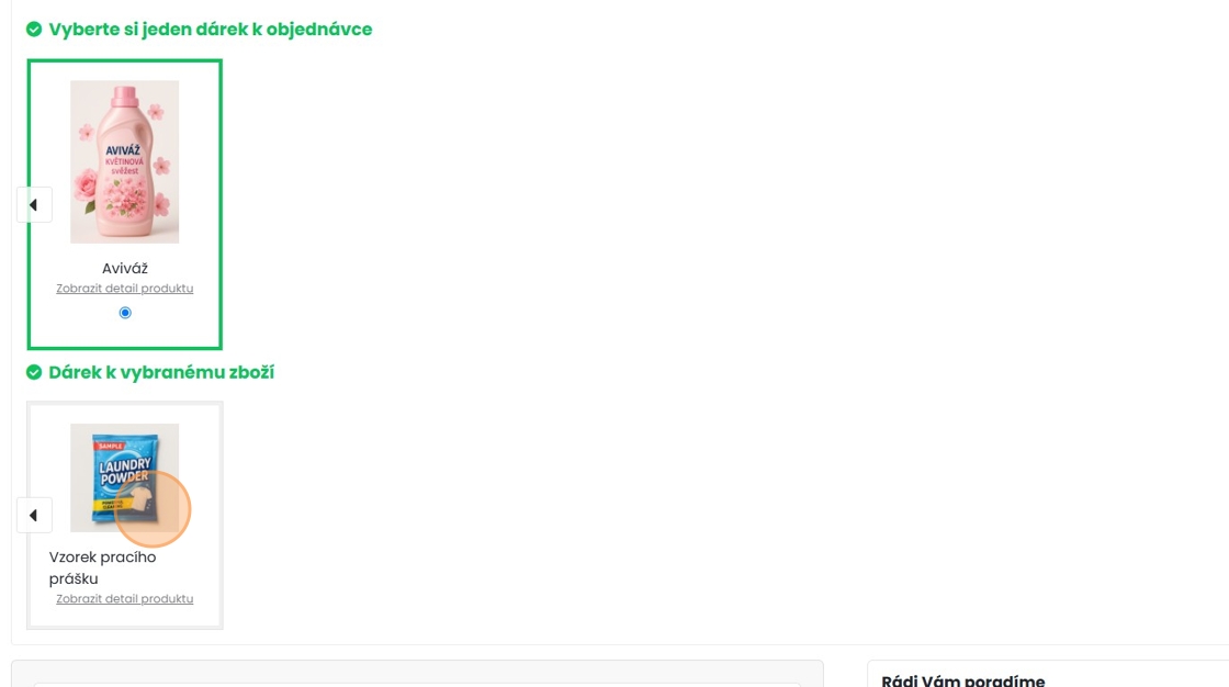 Dárek k objednávce a produktu