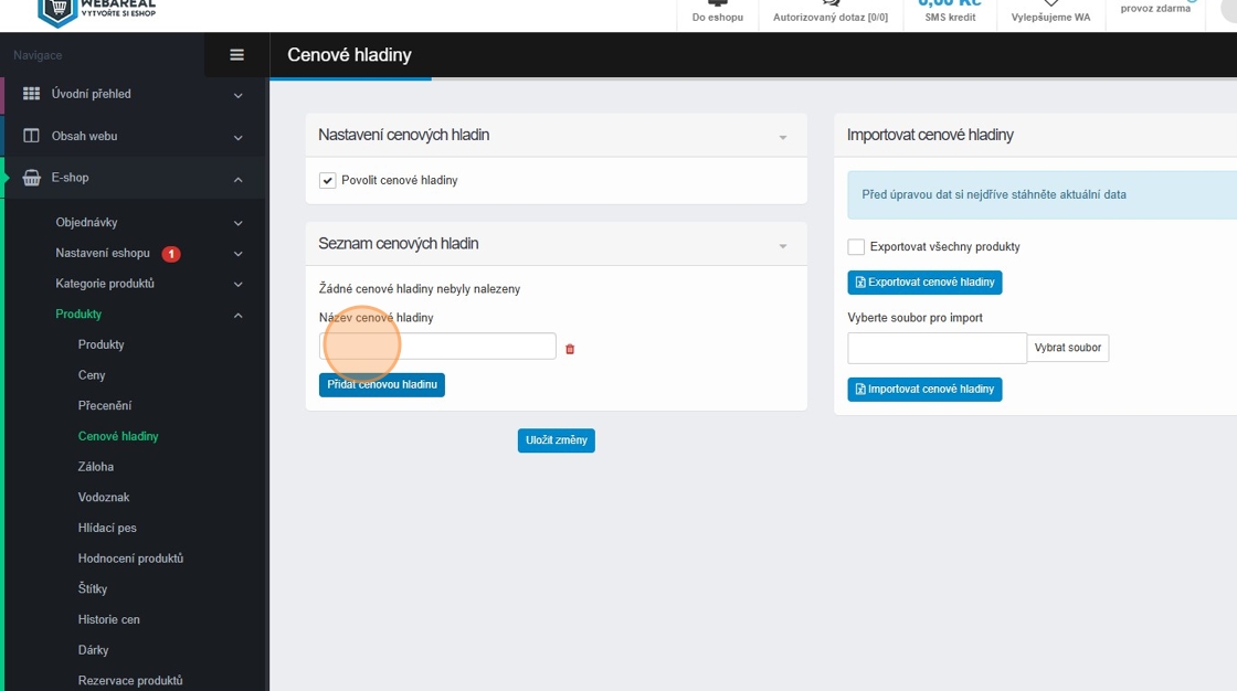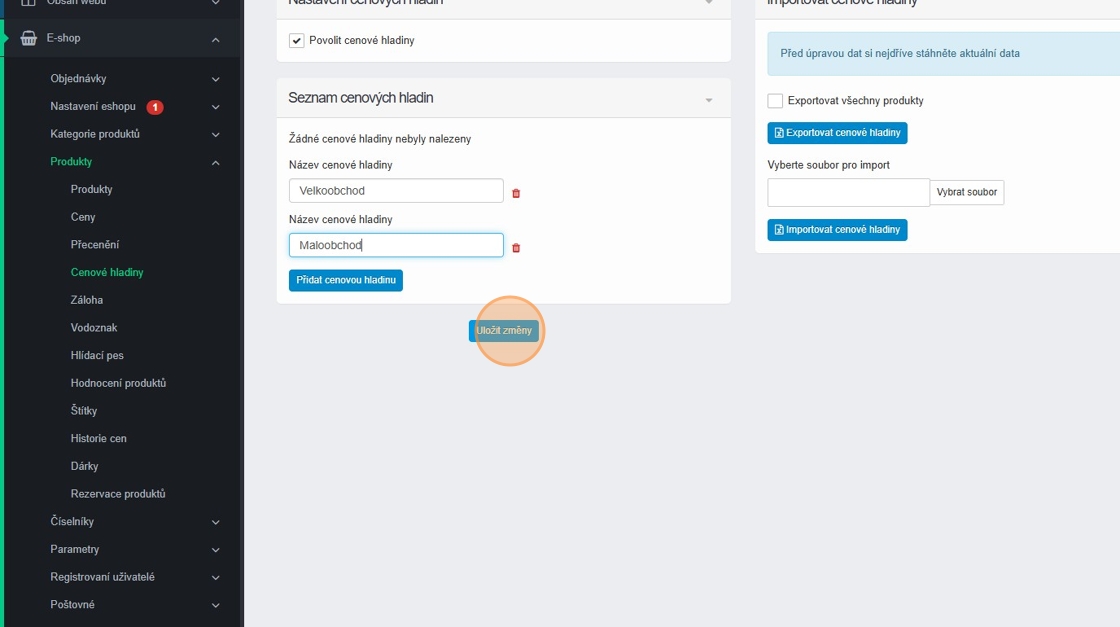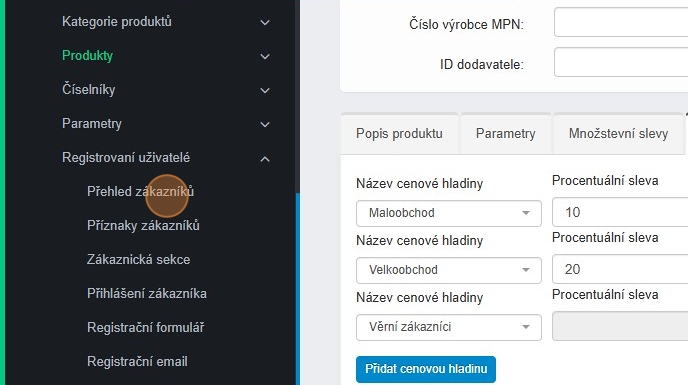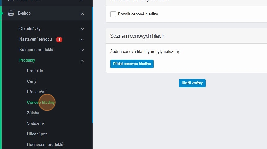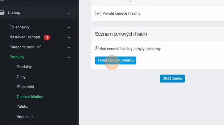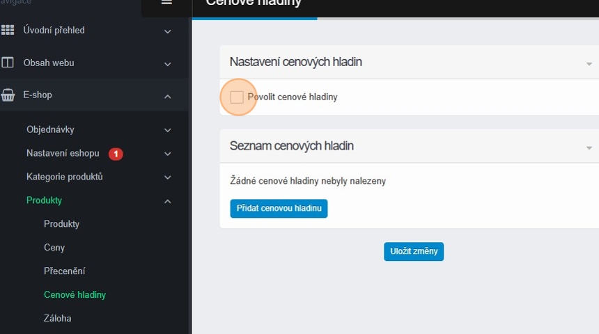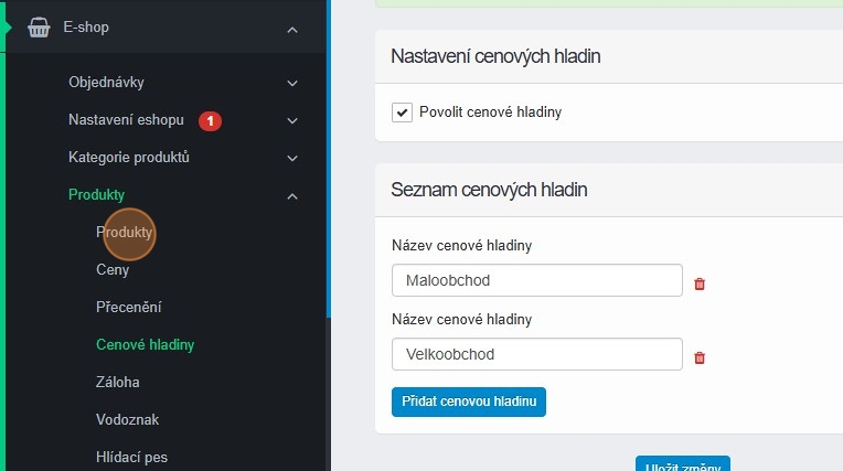 1. Cenové hladiny aktivujete v sekci E-shop – Produkty – Cenové hladiny.