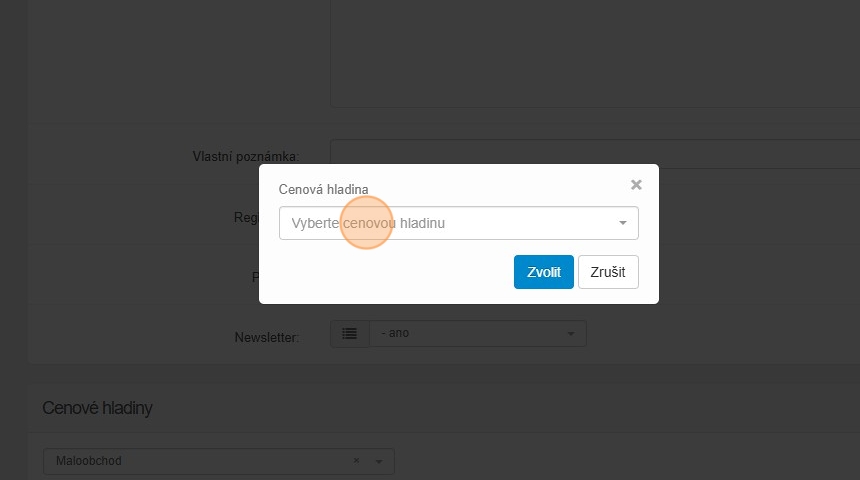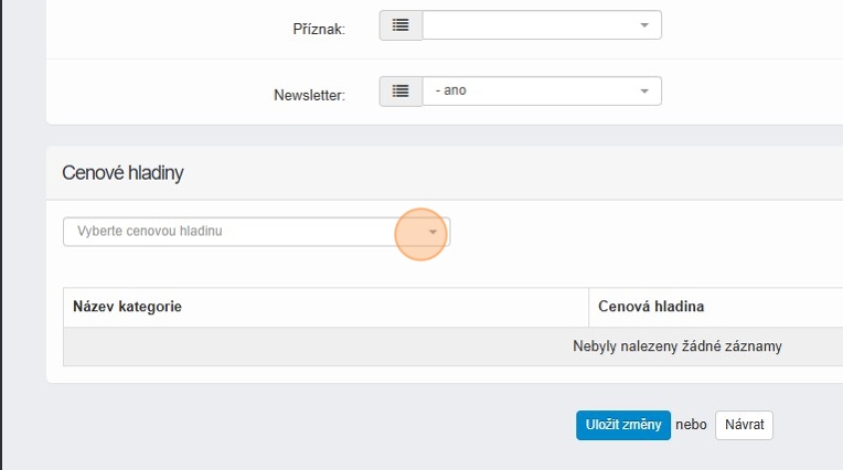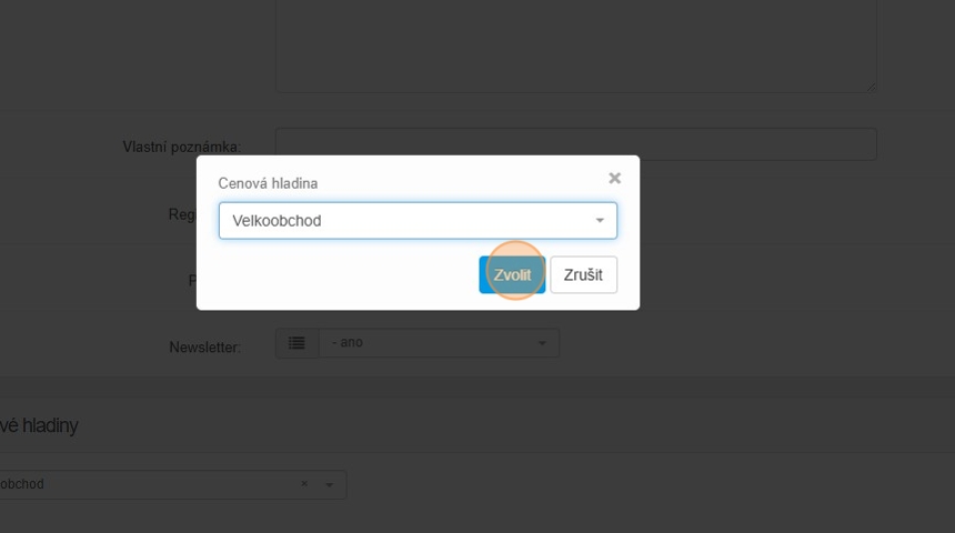 23. Zákazníkovi můžete nastavit jednu cenovou hladinu na veškerý sortiment pomocí „Vyberte cenovou hladinu“.