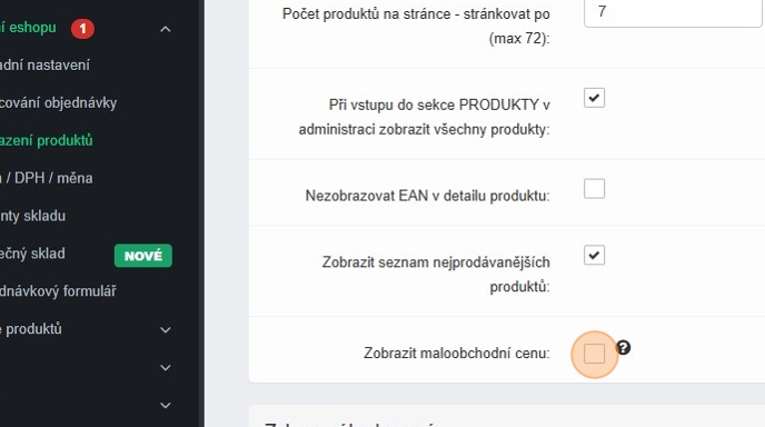 30. Přejděte do sekce E-shop – Nastavení eshopu – Zobrazení produktů.