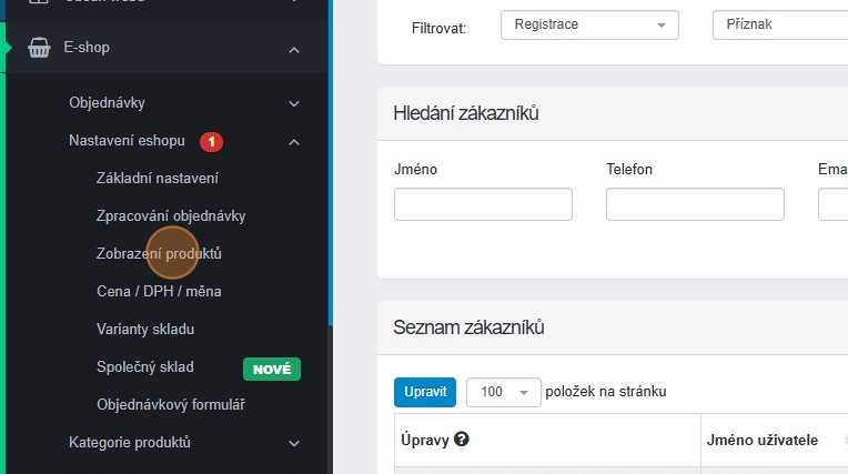 21. Nyní přejděte do sekce E-shop – Registrovaní uživatelé – Přehled zákazníků.