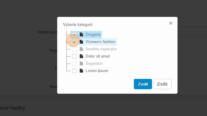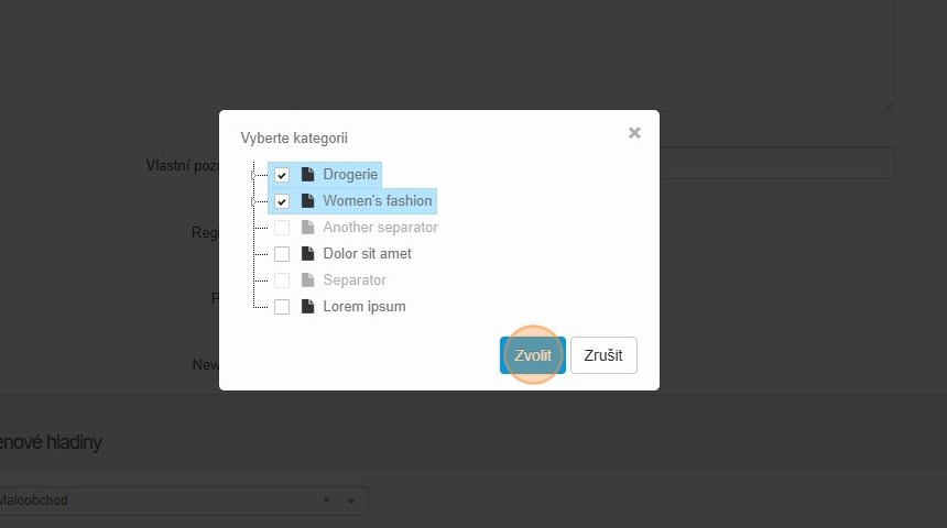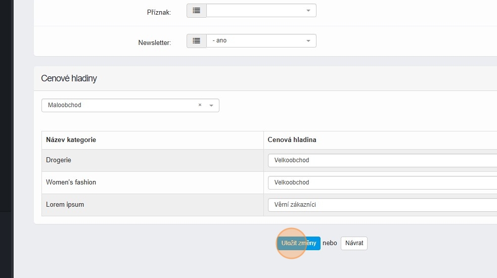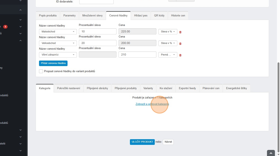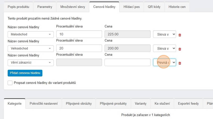 Samozřejmě nemusíte hlavní hladinu nastavovat a určit pouze cenové hladiny individuálně pro vybrané kategorie.
