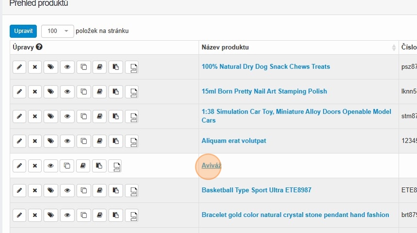7. Otevřete si produkt, kterému chcete cenové hladiny nastavit kliknutím na název produktu nebo ikonu tužky.