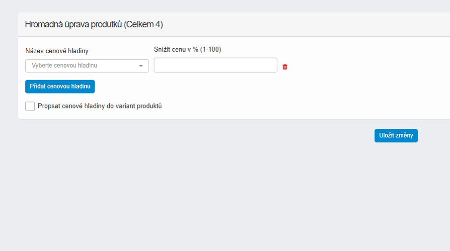 Cenové hladiny lze nastavit i hromadně.